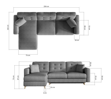 Ecksofa ESGAR-L Schlaffunktion mit Bettkasten