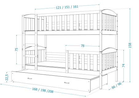 ∎Schlaffläche: 80x160 cm / 80x190 / 90x200 cm