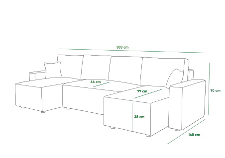 Wohnlandschaft AMRO1 Cord Schlafsofa mit Bettkasten
