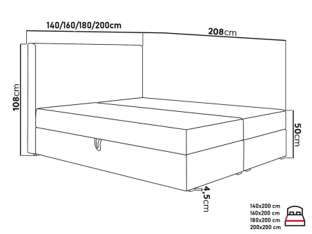 Schlaffläche: 140x200/ 160x200/ 180x200/ 200x200 cm